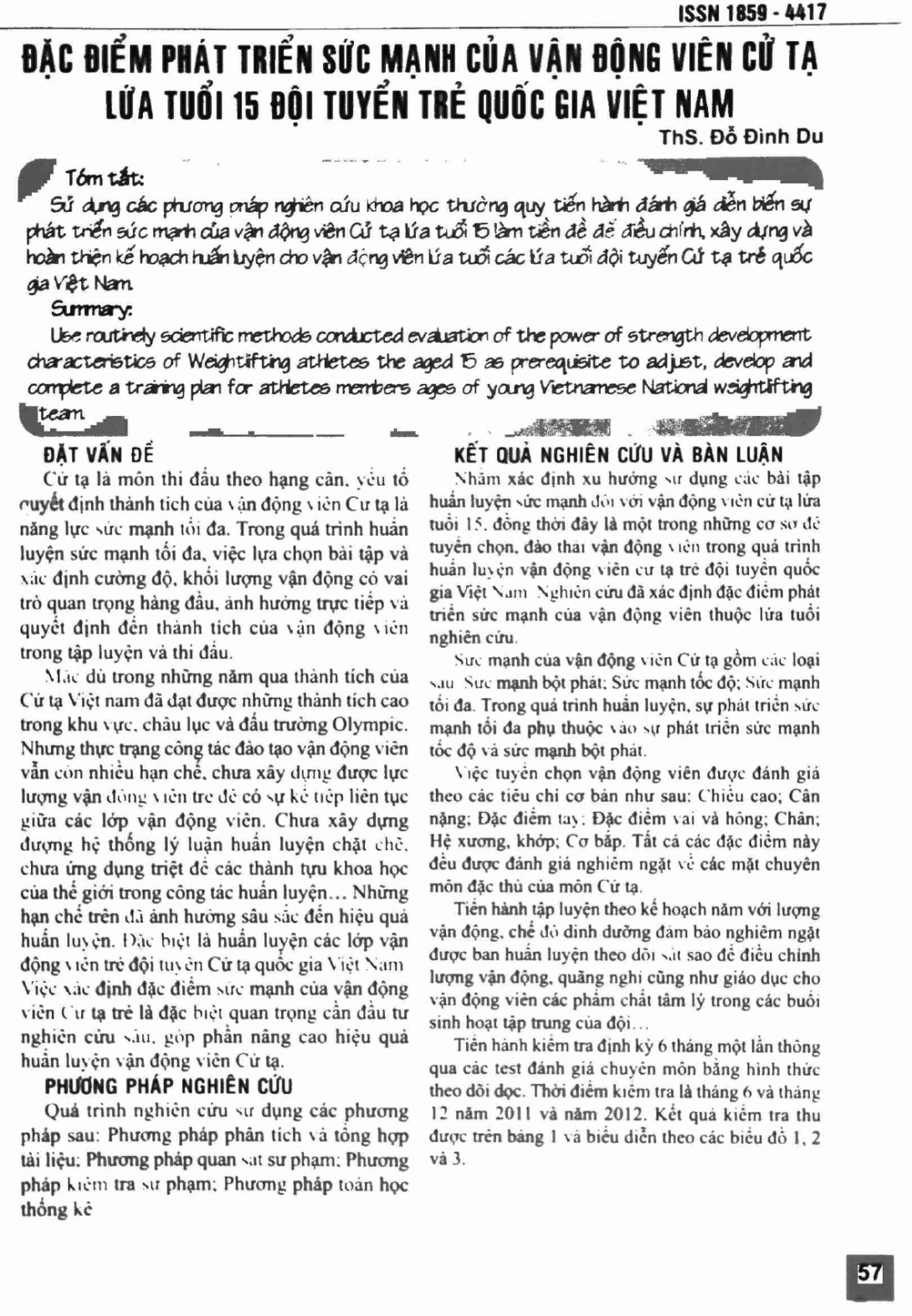 Đặc điểm phát triển sức mạnh của vận động viên cử tạ lứa tuổi 15 đội tuyển trẻ quốc gia Việt Nam