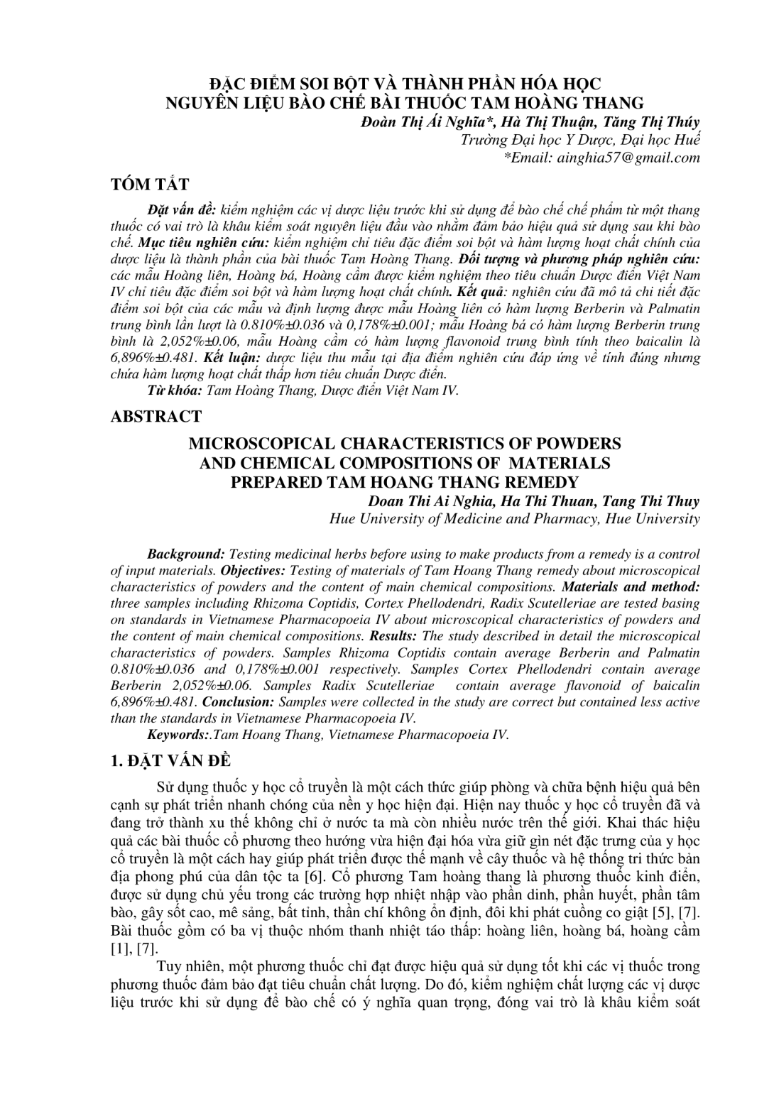 Đặc điểm soi bột và thành phần hóa học nguyên liệu bào chế bài thuốc tam hoàng thang