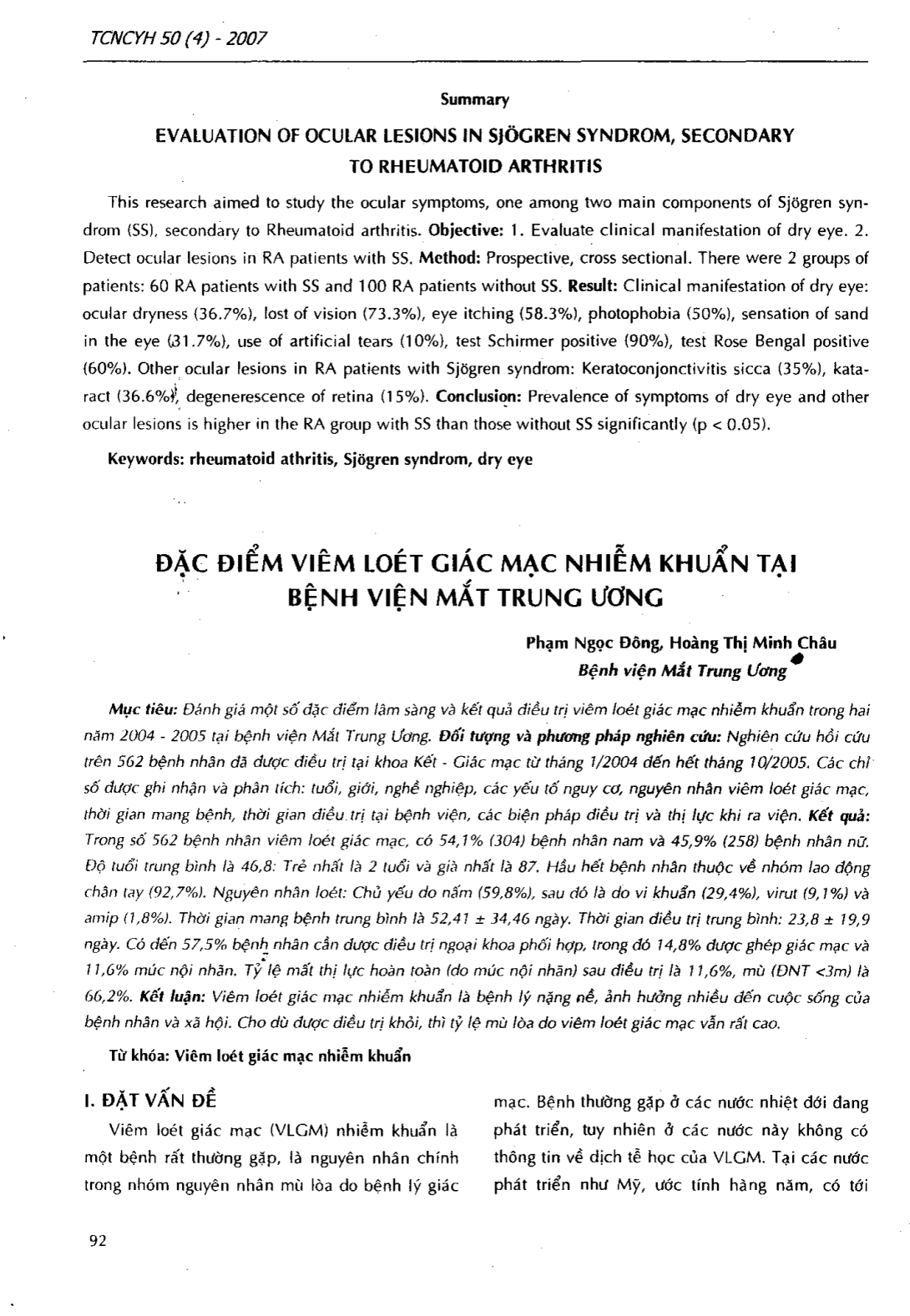 Đặc điểm viêm loét giác mạc nhiễm khuẩn tại Bệnh viện Măt Trung ương