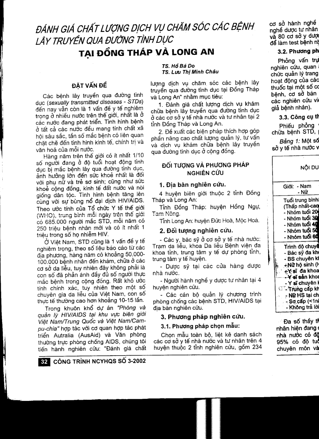 Đánh giá chất lượng dịch vụ chăm sóc các bệnh lây truyền qua đường tình dục tại Đồng Tháp và Long An