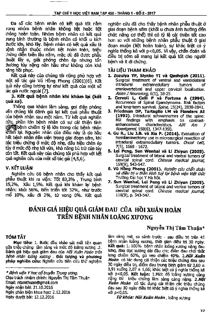 Đánh giá hiệu quả giảm đau của hồi xuân hoàn trên bệnh nhân loãng xương
