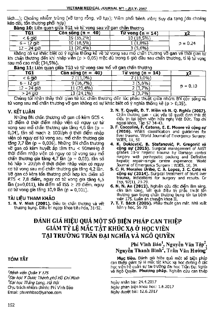 Đánh giá hiệu quả một số biện pháp can thiệp giảm tỷ lệ mắc tật khúc xạ ở 220 học viên tại trường Trần Đại Nghĩa và Ngô Quyền. Kết quả cho thấy các giải pháp truyền thông, giáo dục sức khỏe, tổ chức khám sàng lọc, điều trị khắc phụ và tăng cường quản lý học viên đã cho thấy hiệu quả giảm tỷ lệ mắc tật khúc xạ, ở nhóm can thiệp từ 34,5 phần trăm giảm còn 21,8 phần trăm, hiệu quả can thiệp đạt 13,6 phần trăm. Tỷ lệ cận thị mức độ trên 1 đi ốp ở nhóm can thiệp từ 11,8 phần trăm đã giảm xuống 7,7 phần trăm.