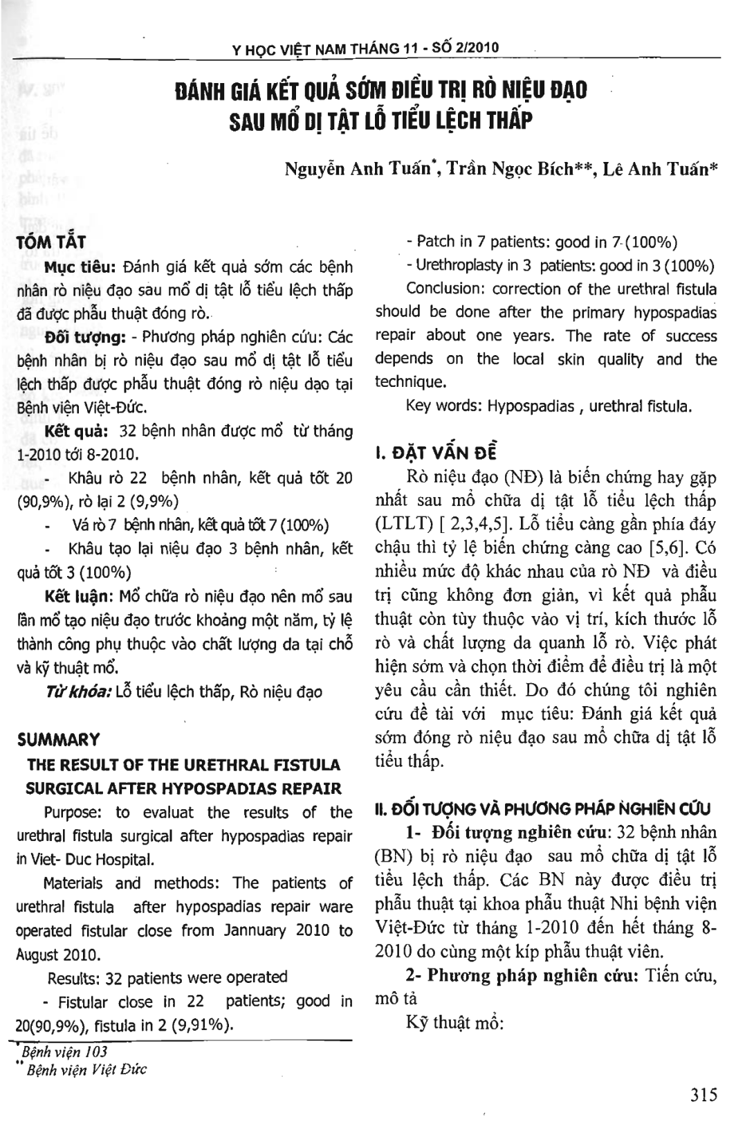 Đánh giá kết quả sớm điều trị rò niệu đạo sau mổ dị tật lỗ tiểu lệch thấp