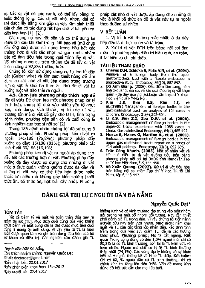 Đánh giá thị lực trên 720 người dân Đà Nẵng nhằm xác định tính trầm trọng của việc suy giảm thị lực, đề ra các hướng khăc phục. Kết quả nghiên cứu cho thấy chỉ có 80,1 phần trăm người dân có thị lực bình thường, khi có chỉnh kính thì tăng lên đến 94 phần trăm. Vấn đề mang kính đúng độ hết sức cần thiết cho mọi lứa tuổi.