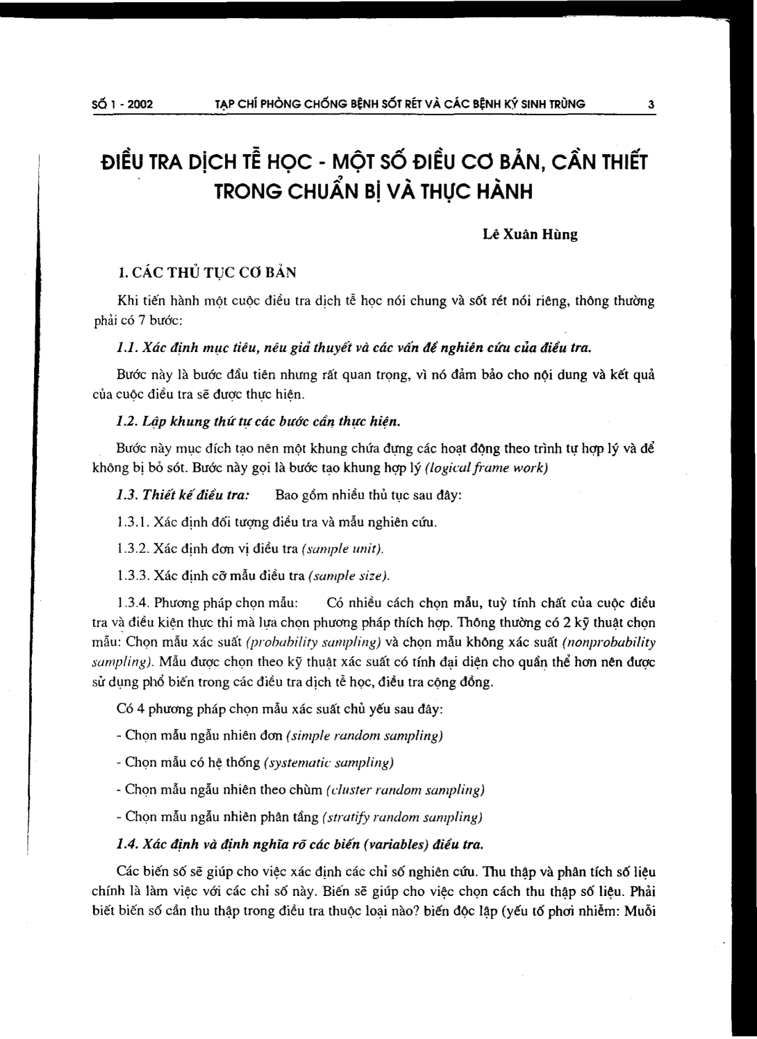Điều tra dịch tễ học-một số điều cơ bản, cần thiết trong chuẩn bị và thực hành