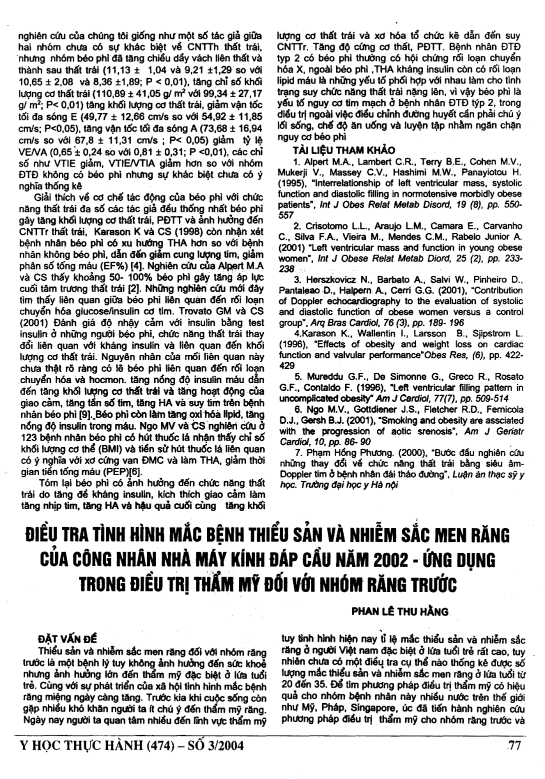 Điều tra tình hình mắc bệnh thiểu sản và nhiễm sắc men răng của công nhân nhà máy kính Đáp Cầu năm 2002-ứng dụng trong điều trị thẩm mỹ đối với nhóm răng trước