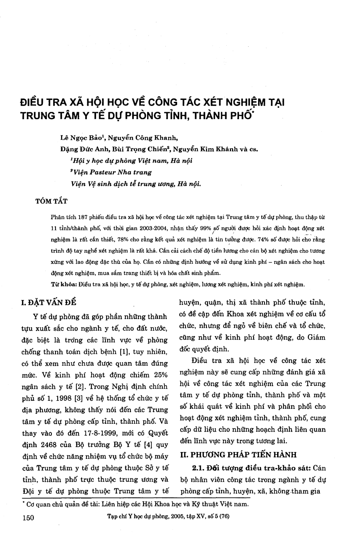 Điều tra xã hội học về công tác xét nghiệm tại Trung tâm y tế dự phòng tỉnh, thành phố