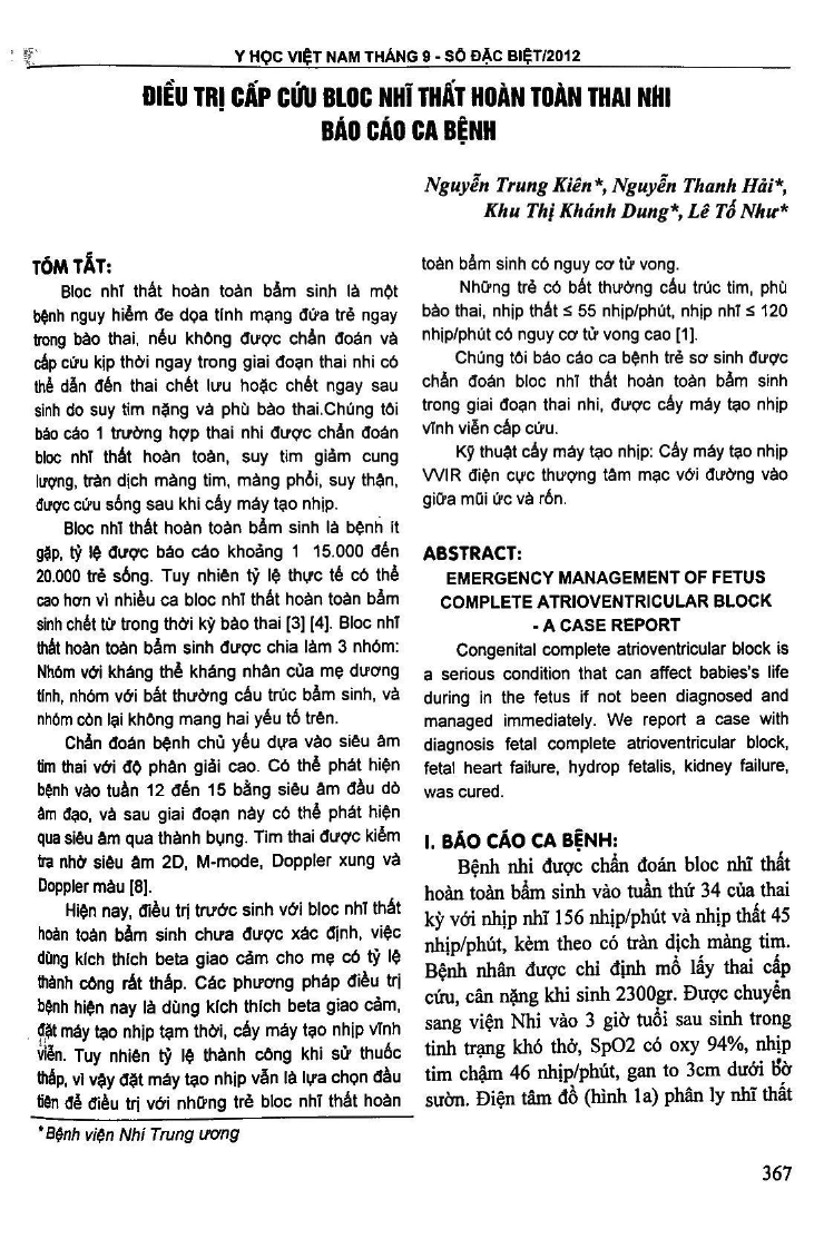 Điều trị cấp cứu Bloc nhĩ thất hoàn toàn thai nhi báo cáo ca bệnh