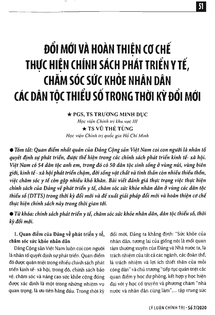 Đổi mới và hoàn thiện cơ chế thực hiện chính sách phát triển y tế, chăm sóc sức khỏe nhân dân các dân tộc thiểu số trong thời kỳ đổi mới