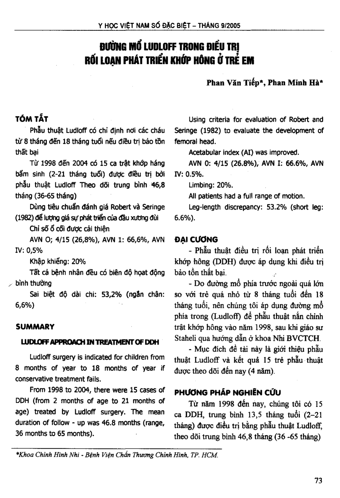 Đường mổ Ludloff trong điều trị rối loạn phát triển khớp hông ở trẻ em