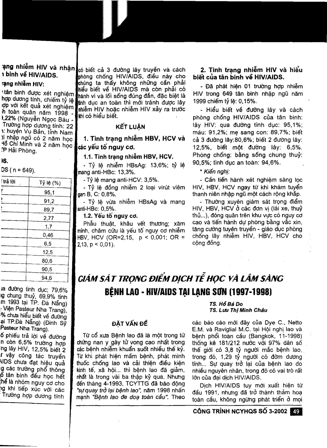 Giám sát trọng điểm dịch tễ học và lâm sàng bệnh lao - HIV/AIDS tại Lạng Sơn (1997-2998)