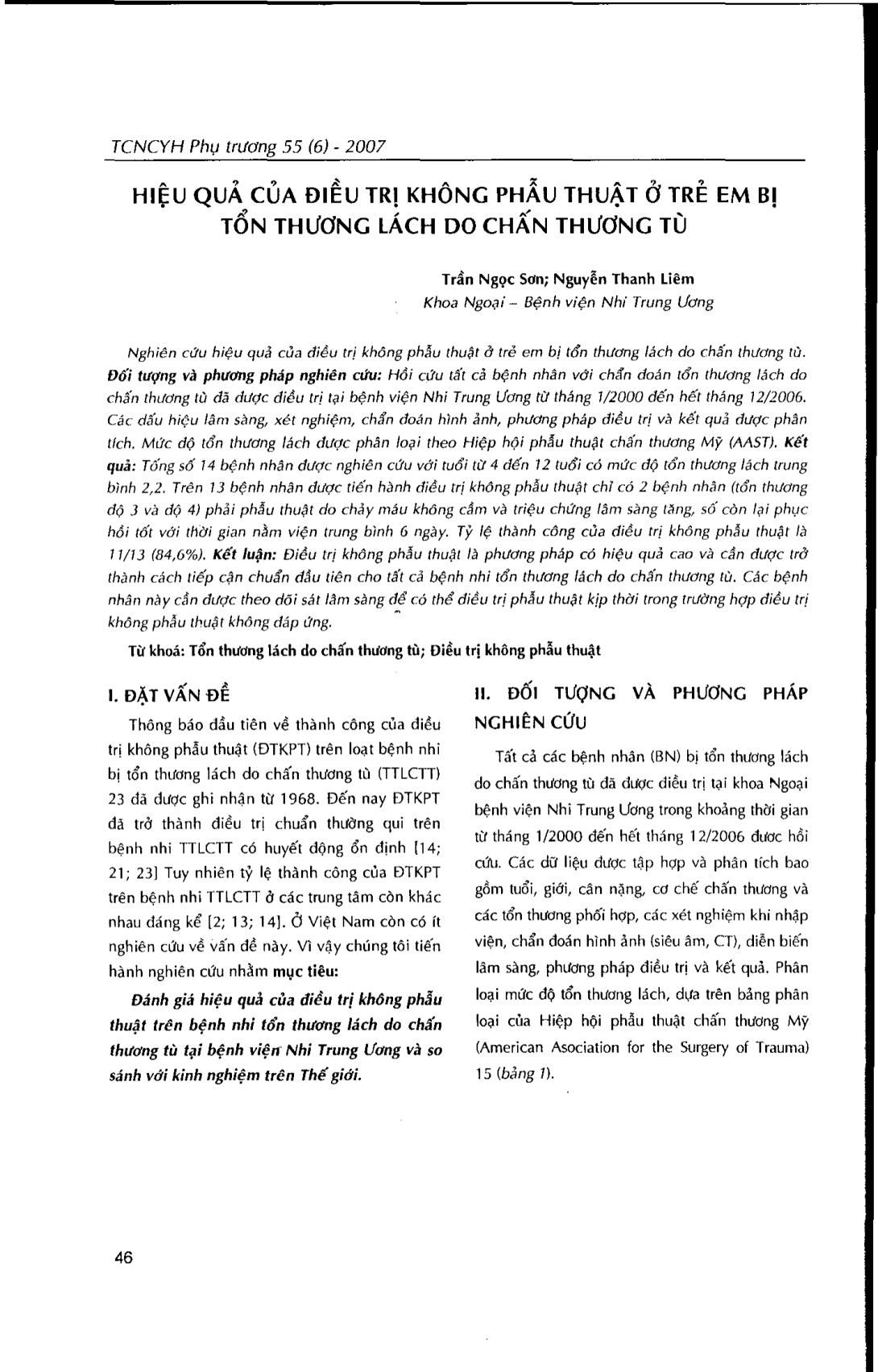 Hiệu quả của điều trị không phẫu thuật ở trẻ em bị tổn thương lách do chấn thương tù