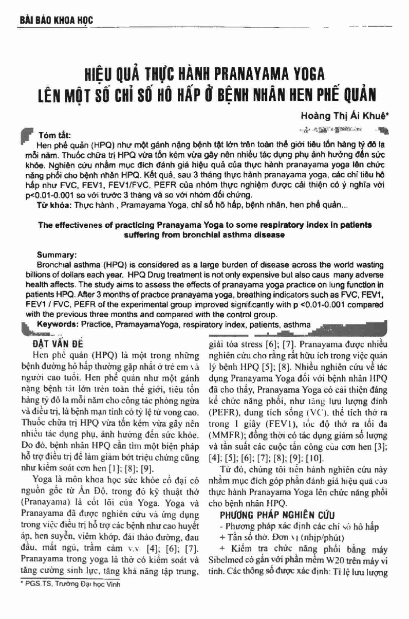 Hiệu quả thực hành Pranayama yoga lên một số chỉ số hô hấp ở bệnh nhân hen phế quản