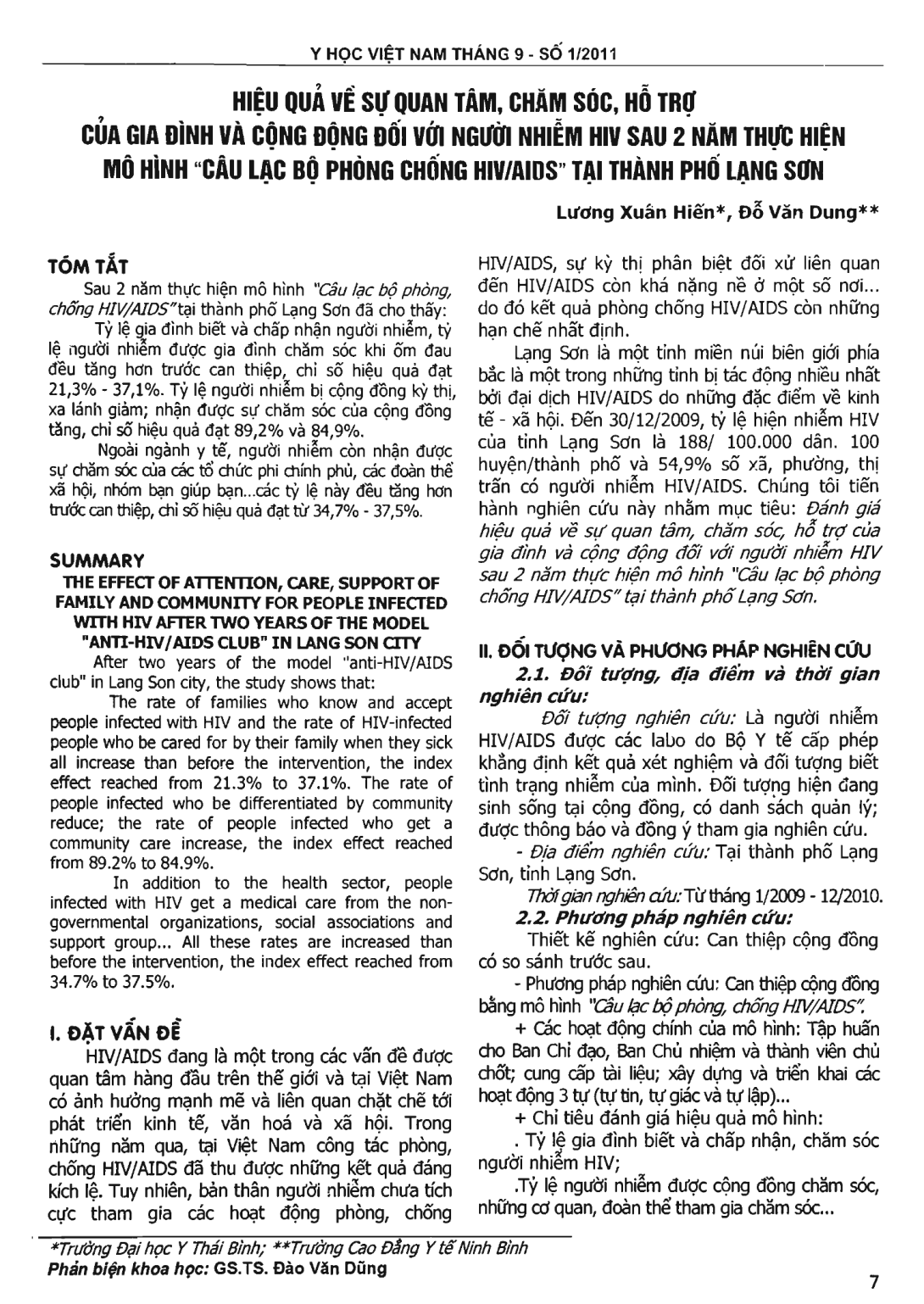 After two years of the implementing model "anti-HIV/AIDS club" in Lang Son city, the study shows that: - The rate of families who know and accept people infected with HIV and the rate of HIV-infected people who be cared for by their family when they sick all increase than before the intervention, the index effect reached from 21.3 percent to 37.1 percent. The rate of people infected who be differentiated by community reduce; the rate of people infected who get a community care increase, the index effect reached from 89.2 percent to 84.9 percent. - In addition to the health sector, people infected with HIV get a medical care from the nongovernmental organizations, social associations and support group... All these rates are increased than before the intervention, the index effect reached from 34.7 percent to 37.5 percent.