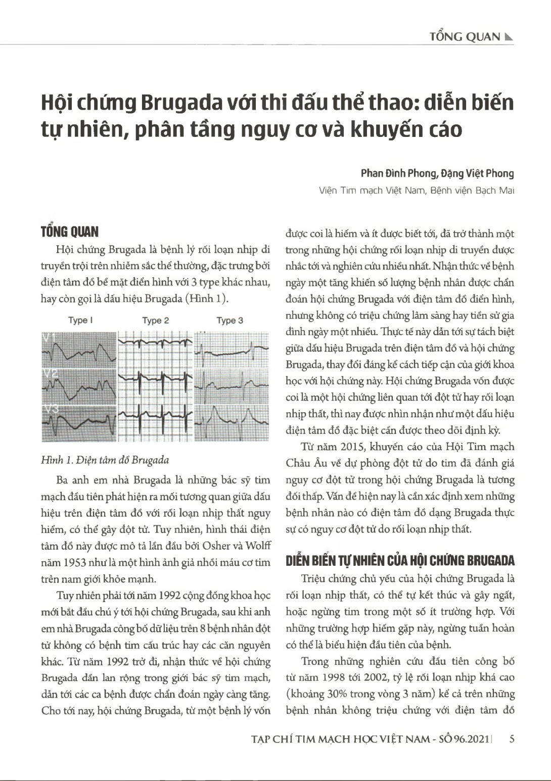 Hội chúng Brugada với thi đấu thể thao: diễn biến tự nhièn, phân tầng nguy cơ và khuyến cáo
