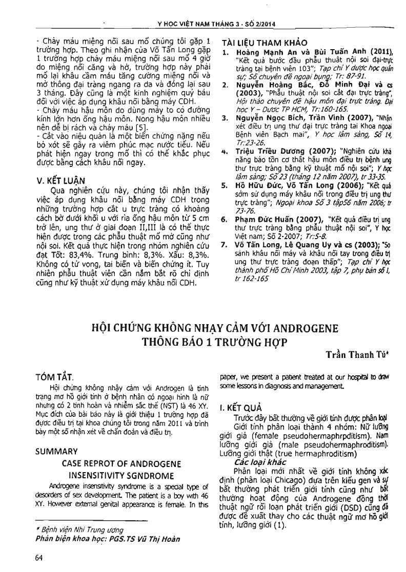 Hội chứng không nhạy cảm với Androgene: Thông báo 1 trường hợp