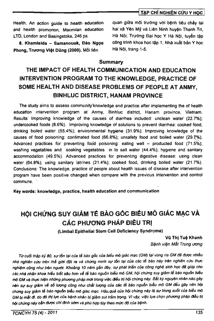 Hội chứng suy giảm tế bào gốc biểu mô giác mạc và các phương pháp điều trị. (Limbal Epithelial Stem Cell Deficiency Syndrome)