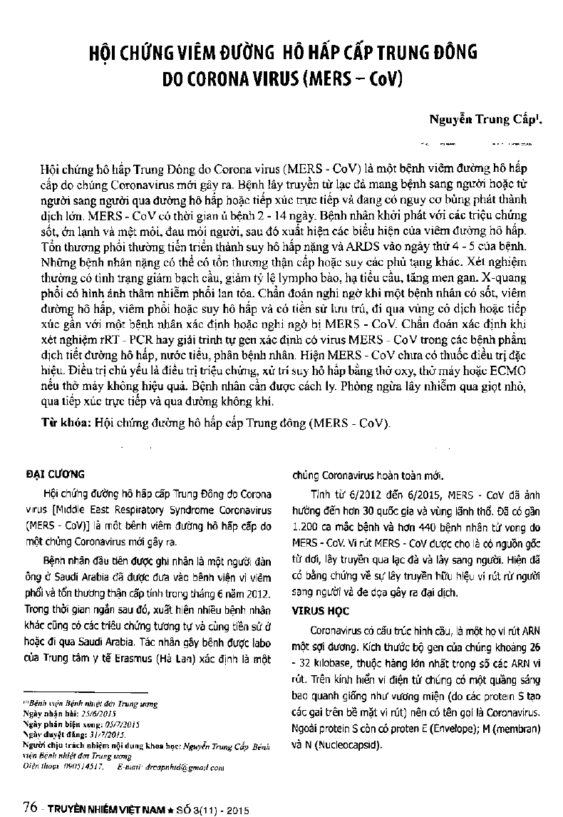Hội chứng viêm đường hô hấp cấp Trung Đông do Corona virus (MERS - CoV)