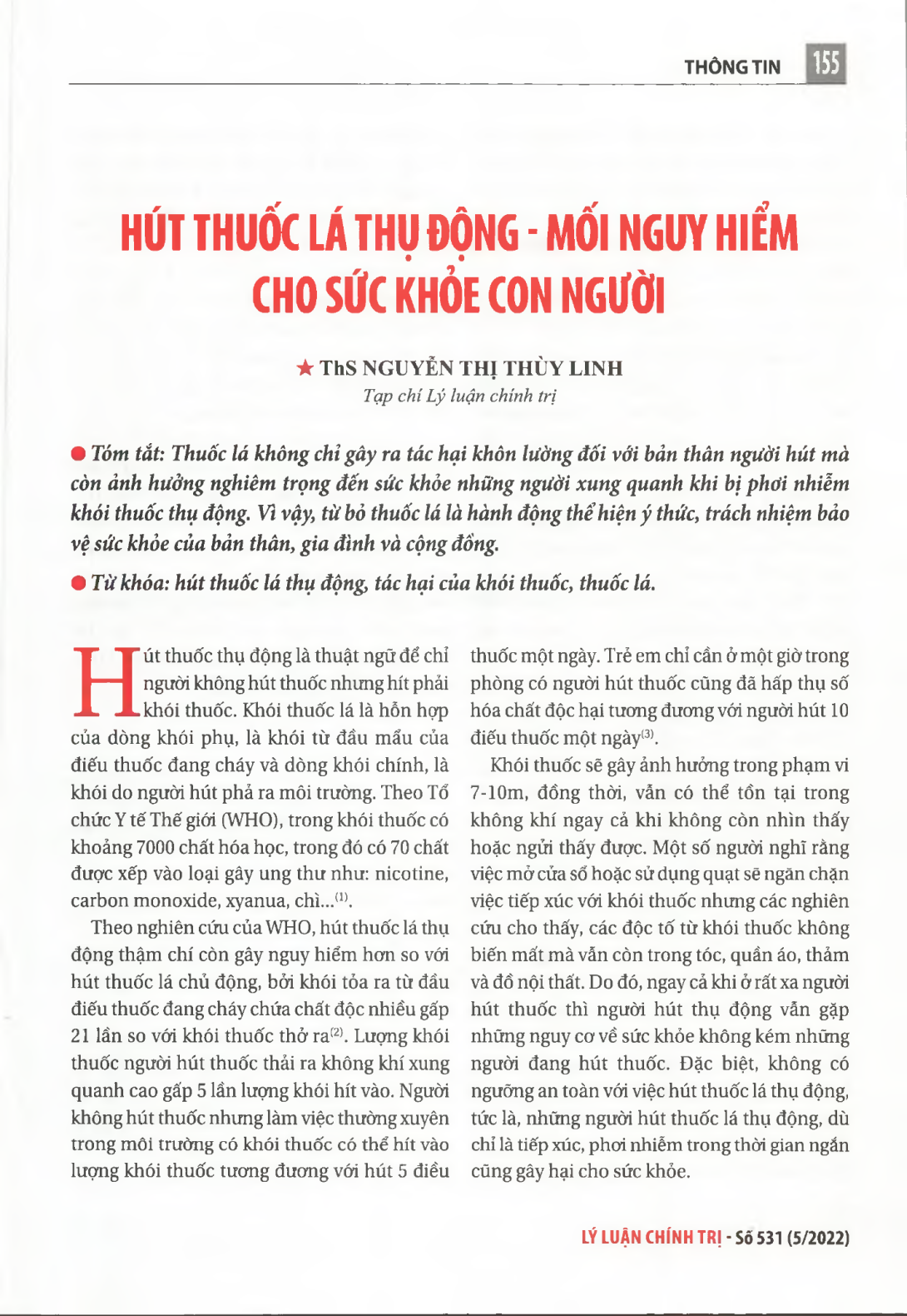 Hút thuốc lá thụ động - mối nguy hiểm cho sức khỏe con người