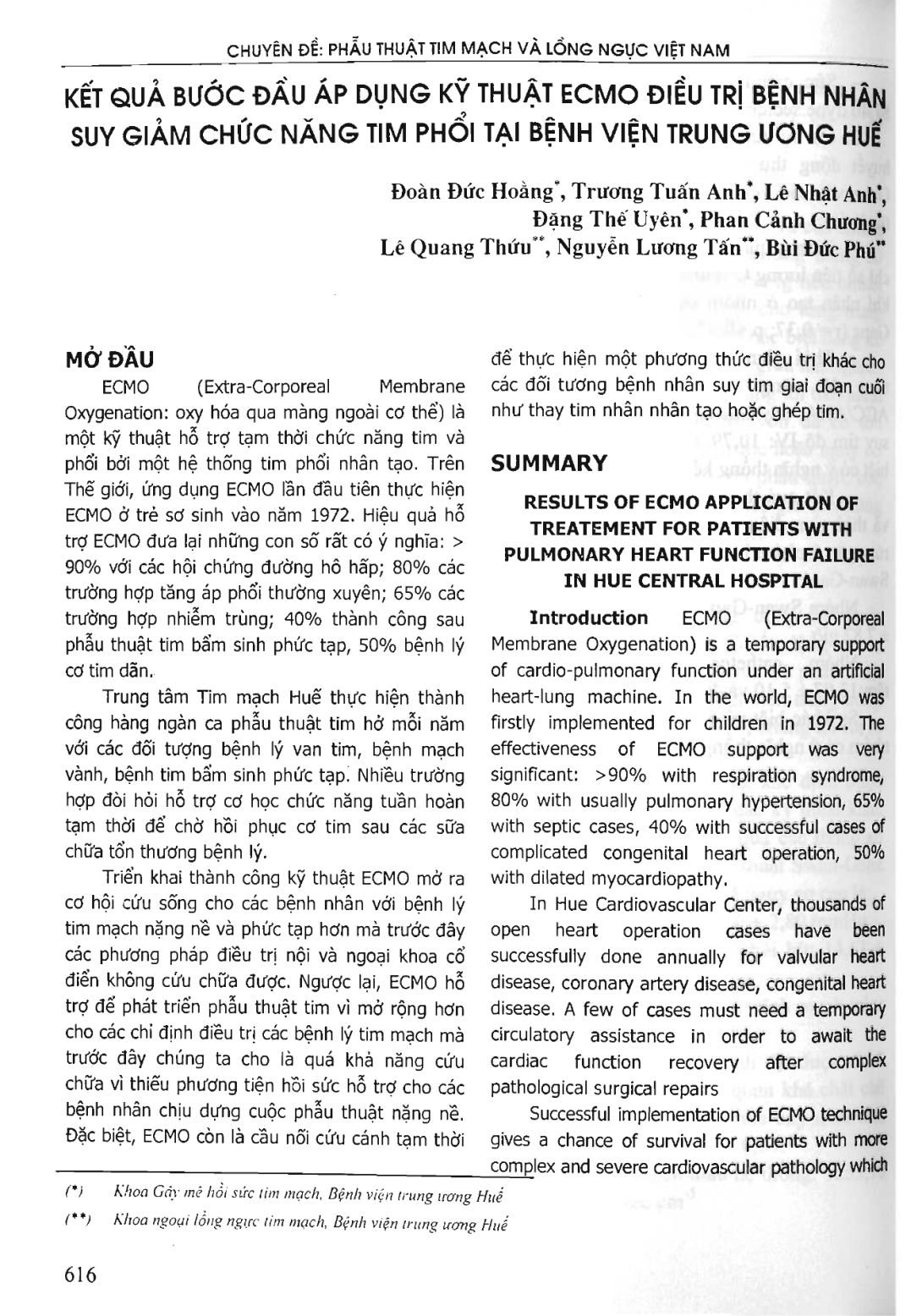 Kết quả bước đầu áp dụng kỹ thuật Ecmo điều trị bệnh nhân suy giảm chức năng tim phổi tại Bệnh viện Trung ương Huế