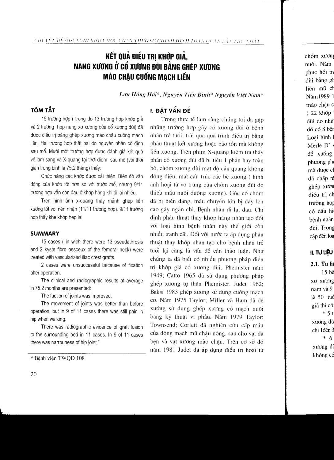 Kết quả điều trị khớp giả, nang xương ở cổ xương đùi bằng ghép xương mào chậu cuống mạch liền