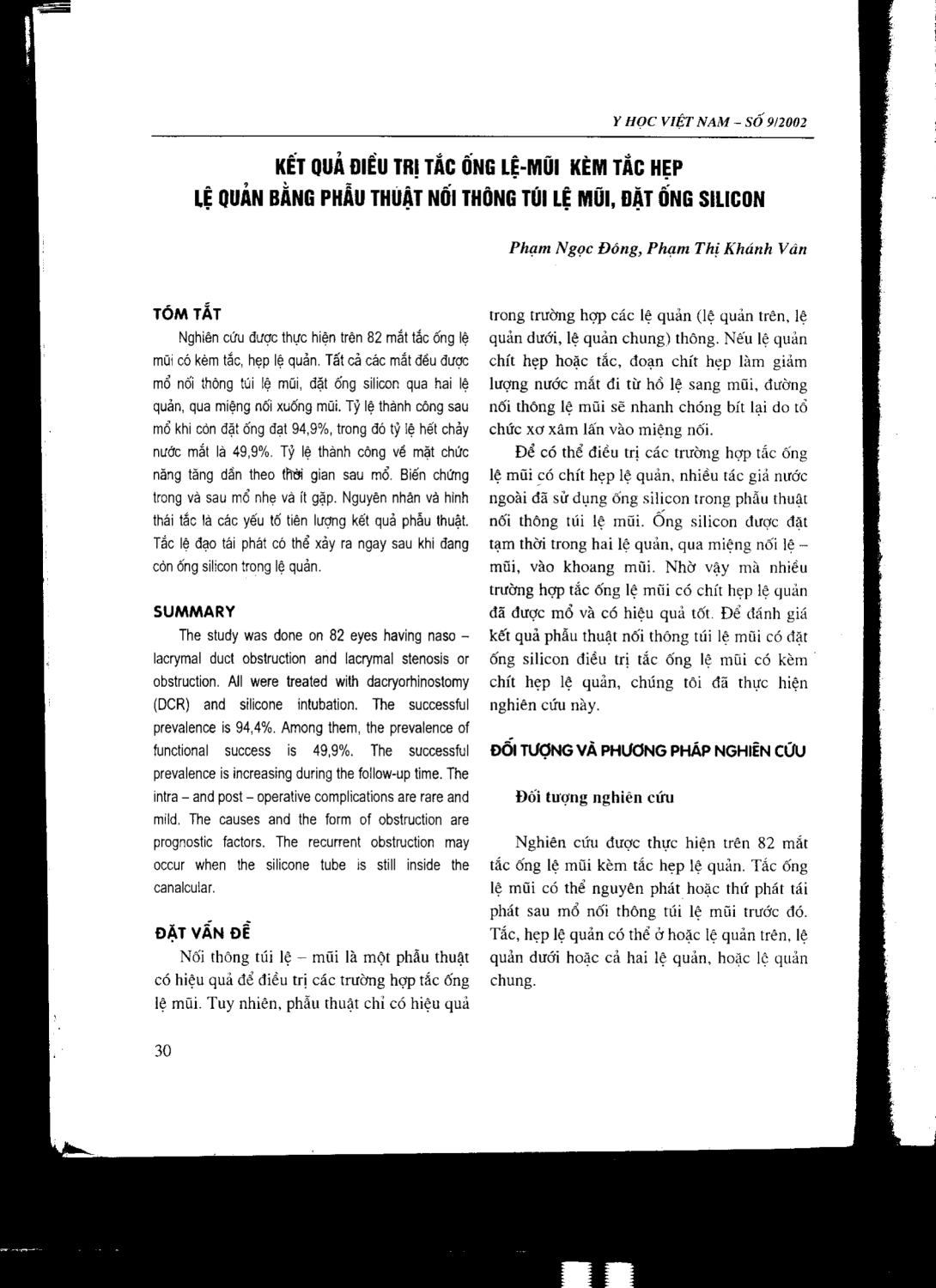Kết quả điều trị tắc ống lệ-mũi kèm tắc hẹp lệ quản bằng phẫu thuật nối thông túi lệ mũi, đặt ống silicon