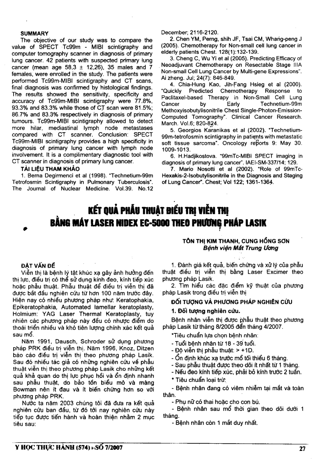 Kết quả phẫu thuật điều trị bằng máy laser Nidex EC-5000 theo phương pháp Lasik