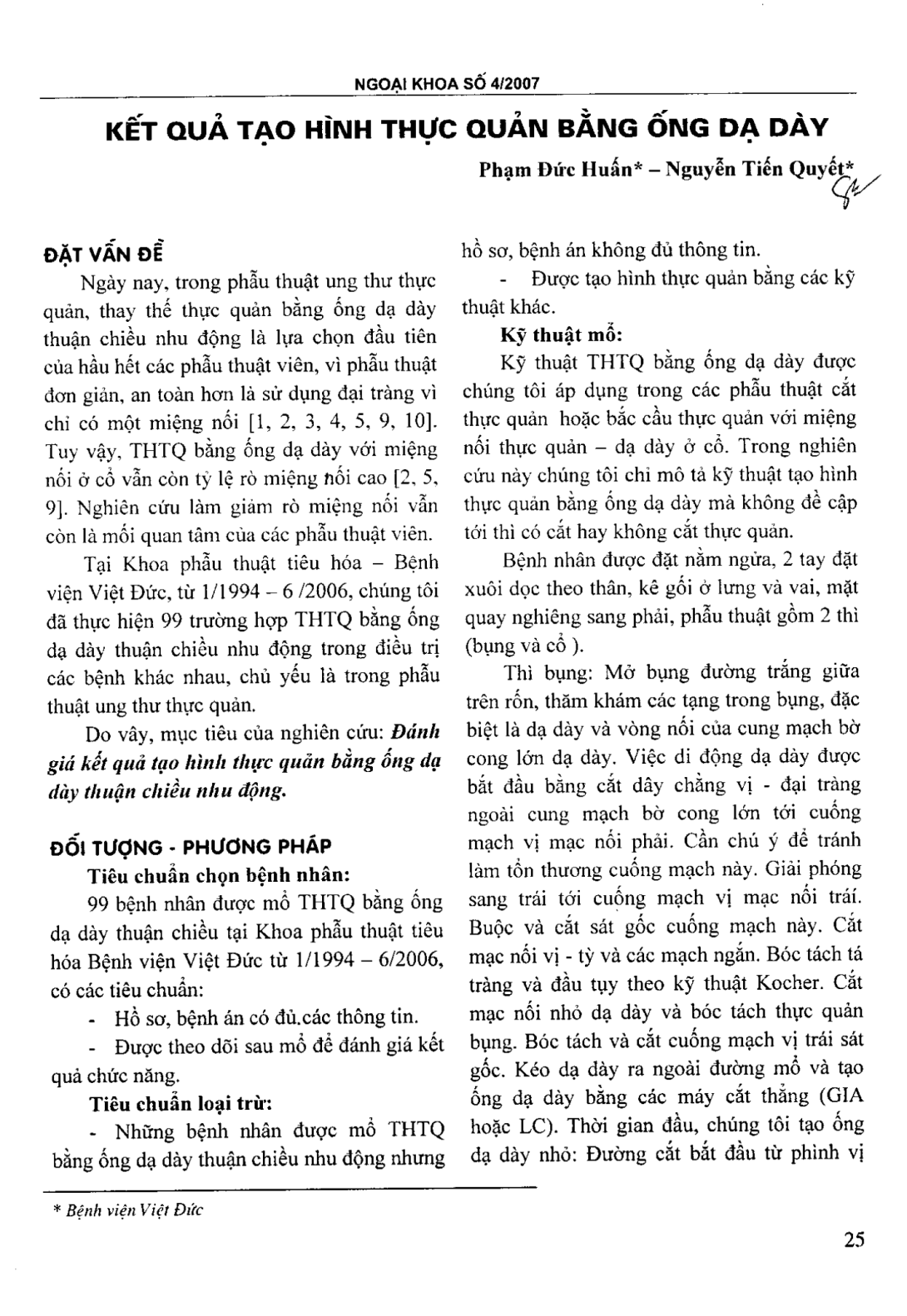 Kết quả tạo hình thực quản bằng ống dạ dày