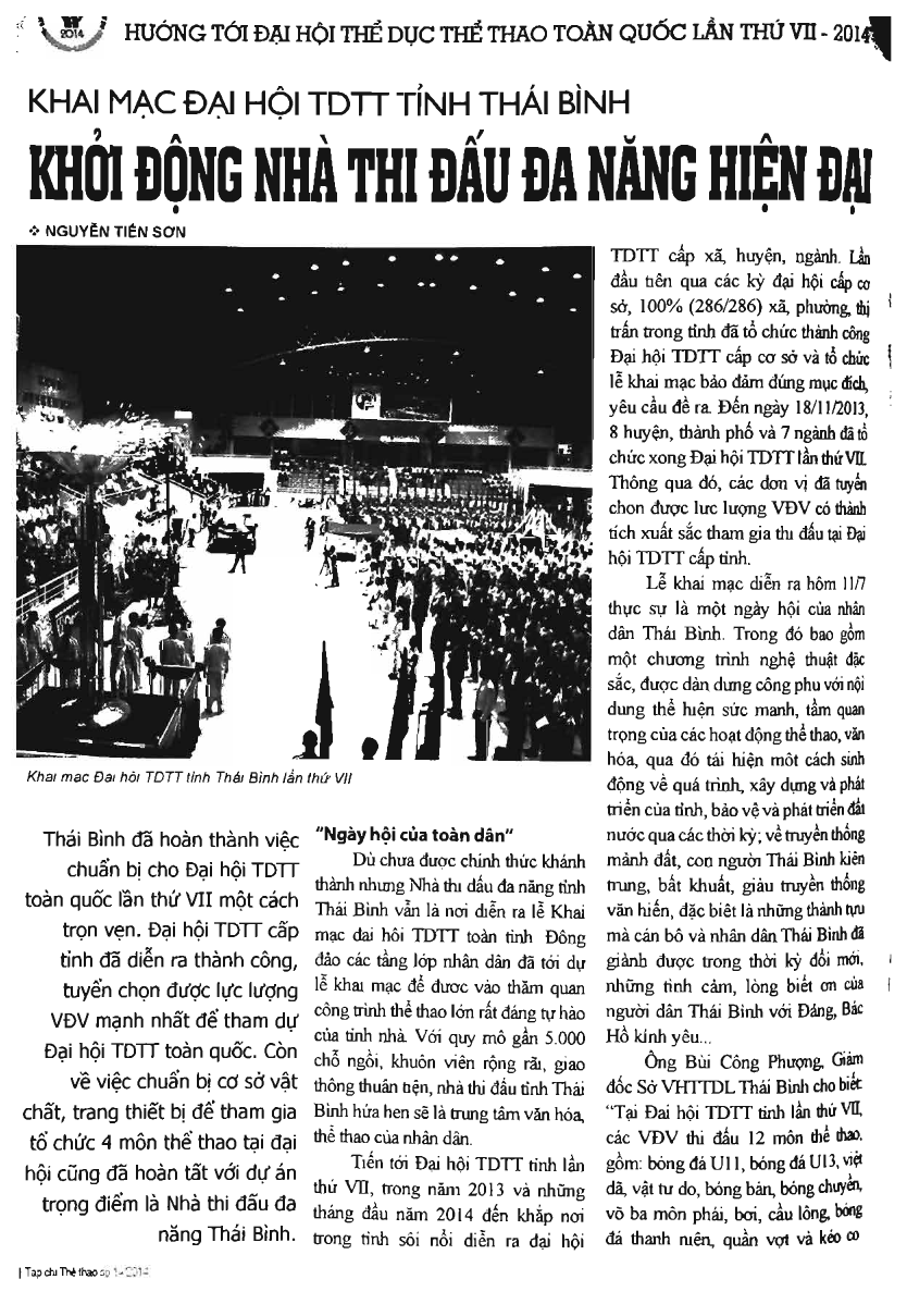 Khai mạc Đại hội TDTT tỉnh Thái Bình: Khởi động nhà thi đấu đa năng hiện đại