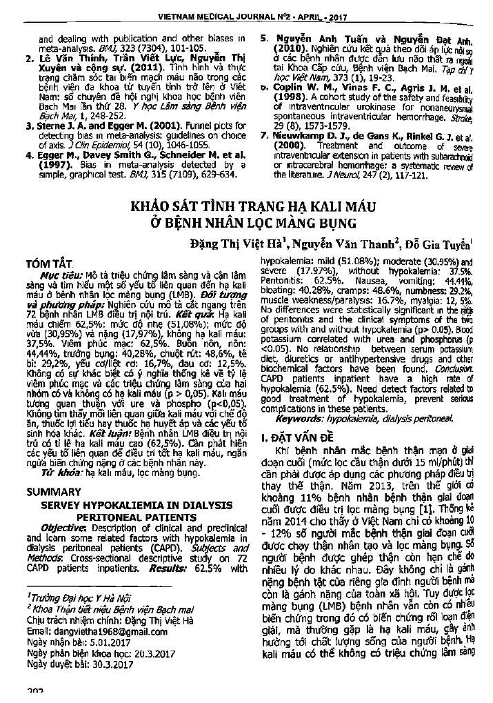 Khảo sát tình trạng hạ kali máu ở bệnh nhân lọc màng bụng
