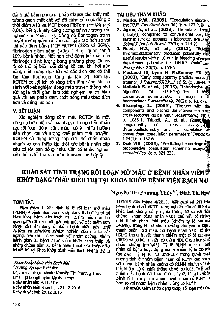 Khảo sát tình trạng rối loạn mỡ máu ở bệnh nhân viêm khớp dạng thấp điều trị tại khoa Khớp, bệnh viện Bạch Mai