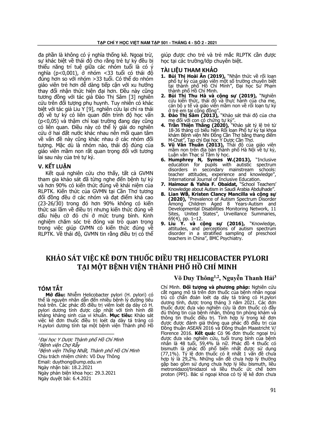 Khảo sát việc kê đơn thuốc điều trị Helicobacter pylori tại một bệnh viện thành phố Hồ Chí Minh