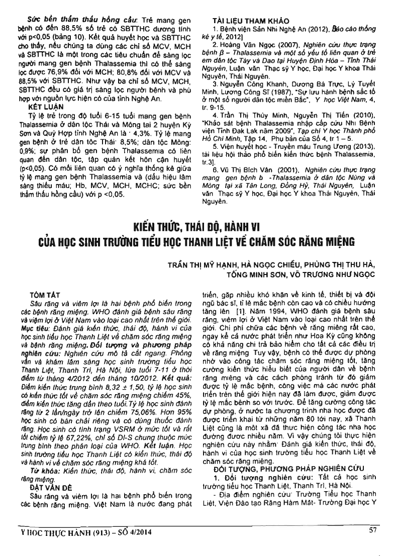 Kiến thức, thái độ, hành vi của học sinh trường tiểu học Thanh Liệt về chăm sóc răng miệng