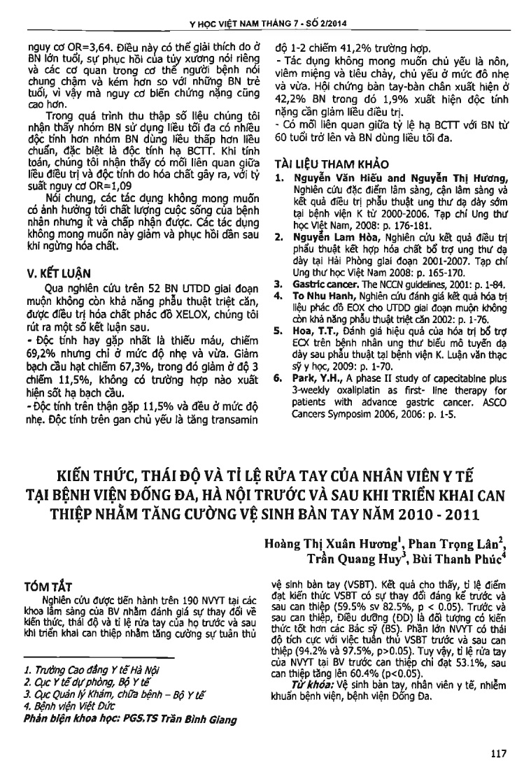 Kiến thức, thái độ và tỷ lệ rửa tay của nhân viên y tế tại Bệnh viện Đống Đa, Hà Nội trước và sau khi triển khai can thiệp nhằm tăng cường vệ sinh bàn tay năm 2010-2011