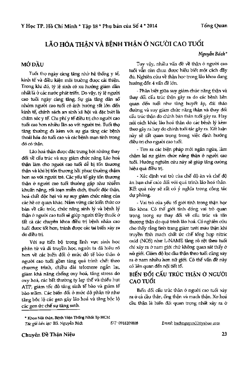 Lão hóa thận và bệnh thận ở người cao tuổi