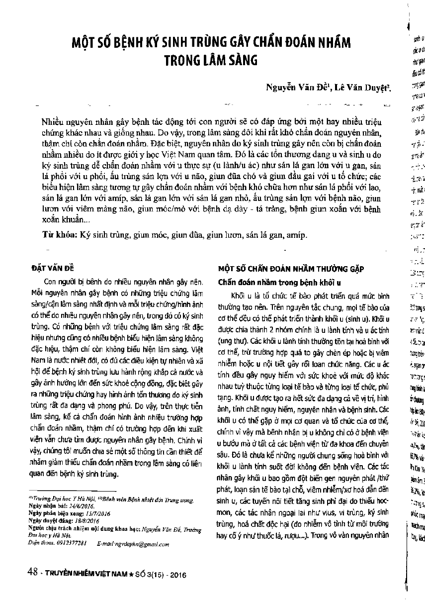 Một số bệnh ký sinh trùng gây chẩn đoán nhầm trong lâm sàng