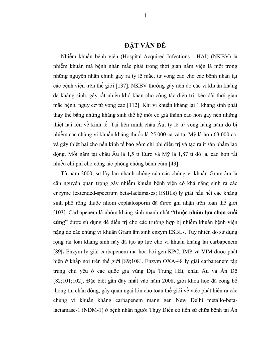 Một số đặc điểm dịch tễ học của nhiễm khuẩn bệnh viện do vi khuẩn kháng carbapenem mang gen NDM-1 tại bệnh viện Việt Đức-Hà..