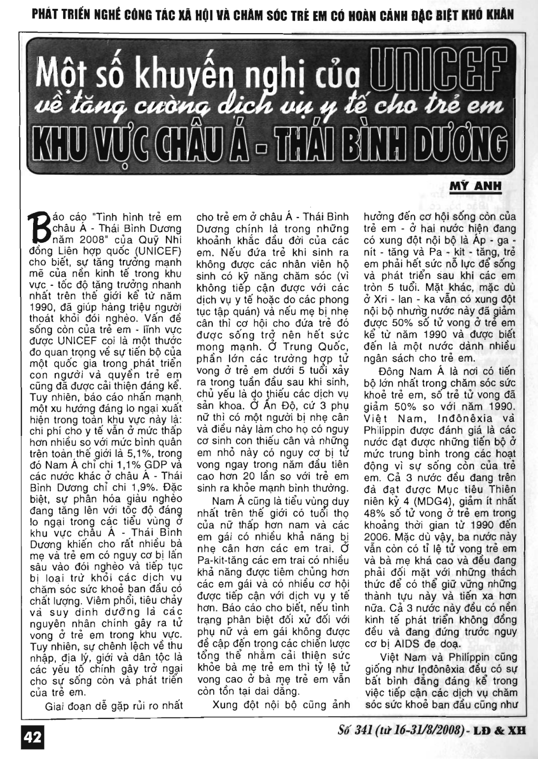 Một số khuyến nghị của UNICEF về tăng cường dịch vụ y tế cho trẻ em khu vực Châu á - Thái Bình Dương