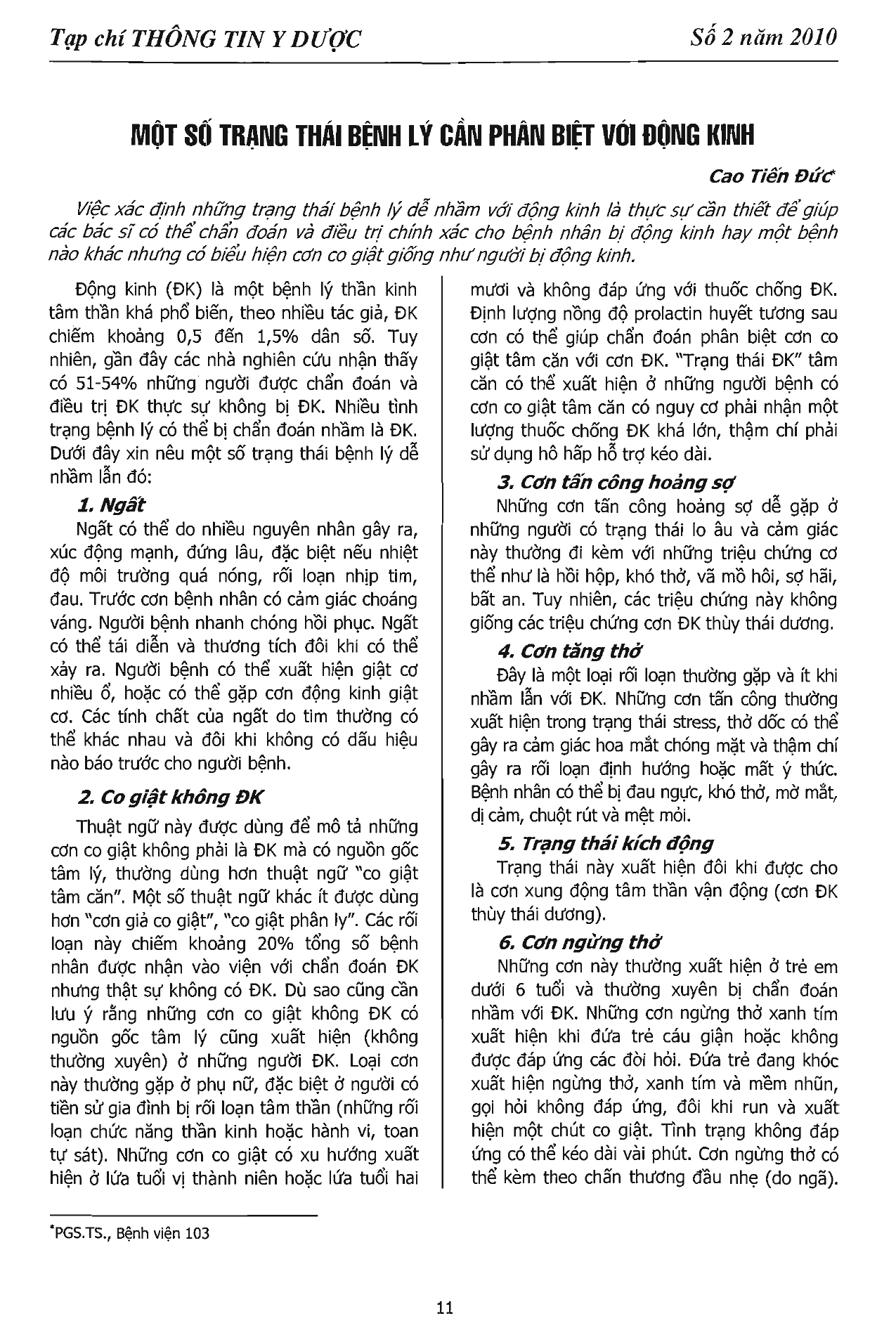 Một số trạng thái bệnh lý cần phân biệt với động kinh