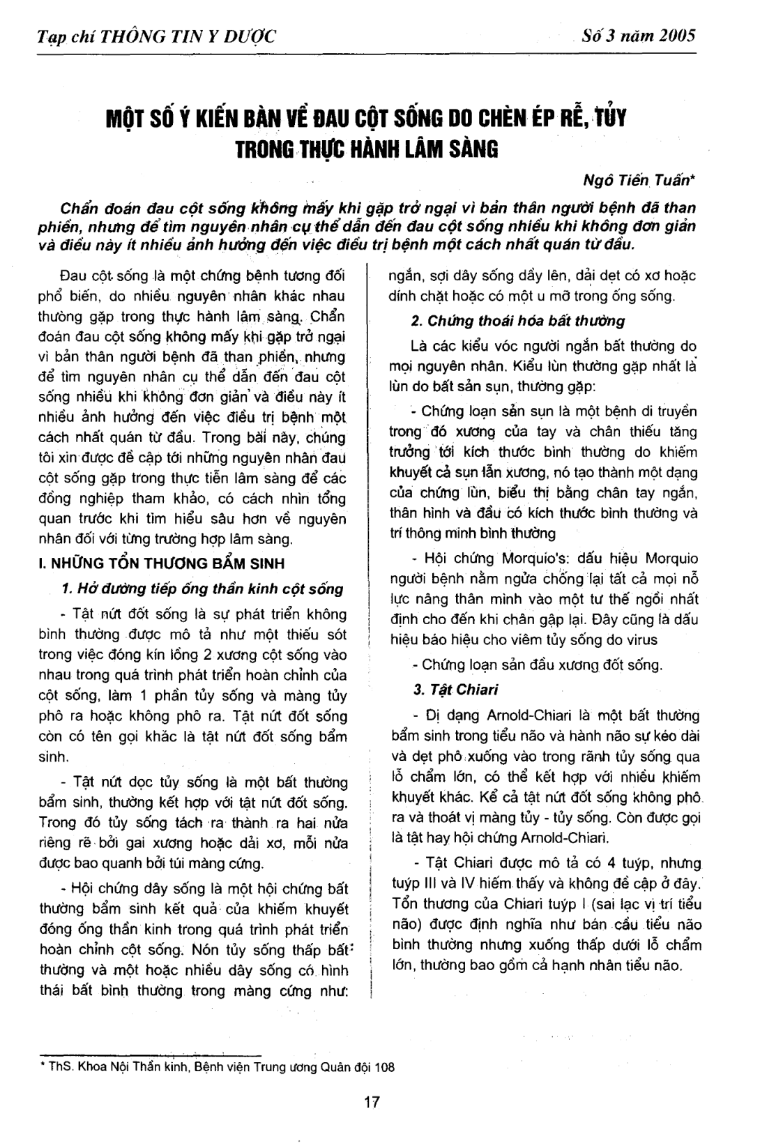 Một số ý kiến về đau cột sống do chèn ép rễ, tuỷ trong thực hành lâm sàng