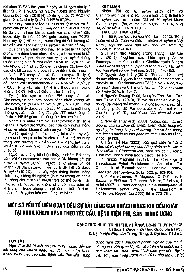 Objectives: To describe some factors which affect the patient's satisfaction about examination services at on-demand clinic in National Hospital of Obstetrics and Gynecology in 2014. Method: A cross sectional descriptive study. Result: By studying on over 418 people who got the examination at ondemand clinic in National Hospital of Obstetrics and Gynecology in 2014 showed that: Patient's satisfation is quite low with the time that spend from register successfully to getting examination (31.10 percent), examination equipments (42.82 percent) and the examination's cost (46.17 percent). Conclusion: Decreasing the time that patients must use by improving administrative method during examination registers, hospital need to expand clinics with advance equipments and adjust the examination's cost to meet patient's examination demand.