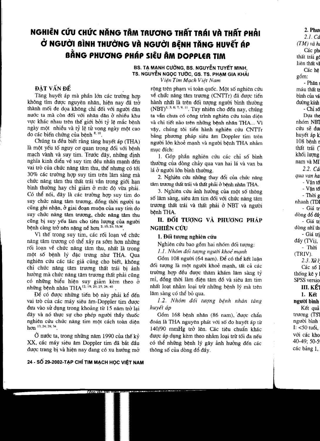 Nghiên cứu chức năng tâm trương thất trái và thất phải ở người bình thường và người bệnh tăng huyết áp bằng phương pháp siêu âm Doppler tim