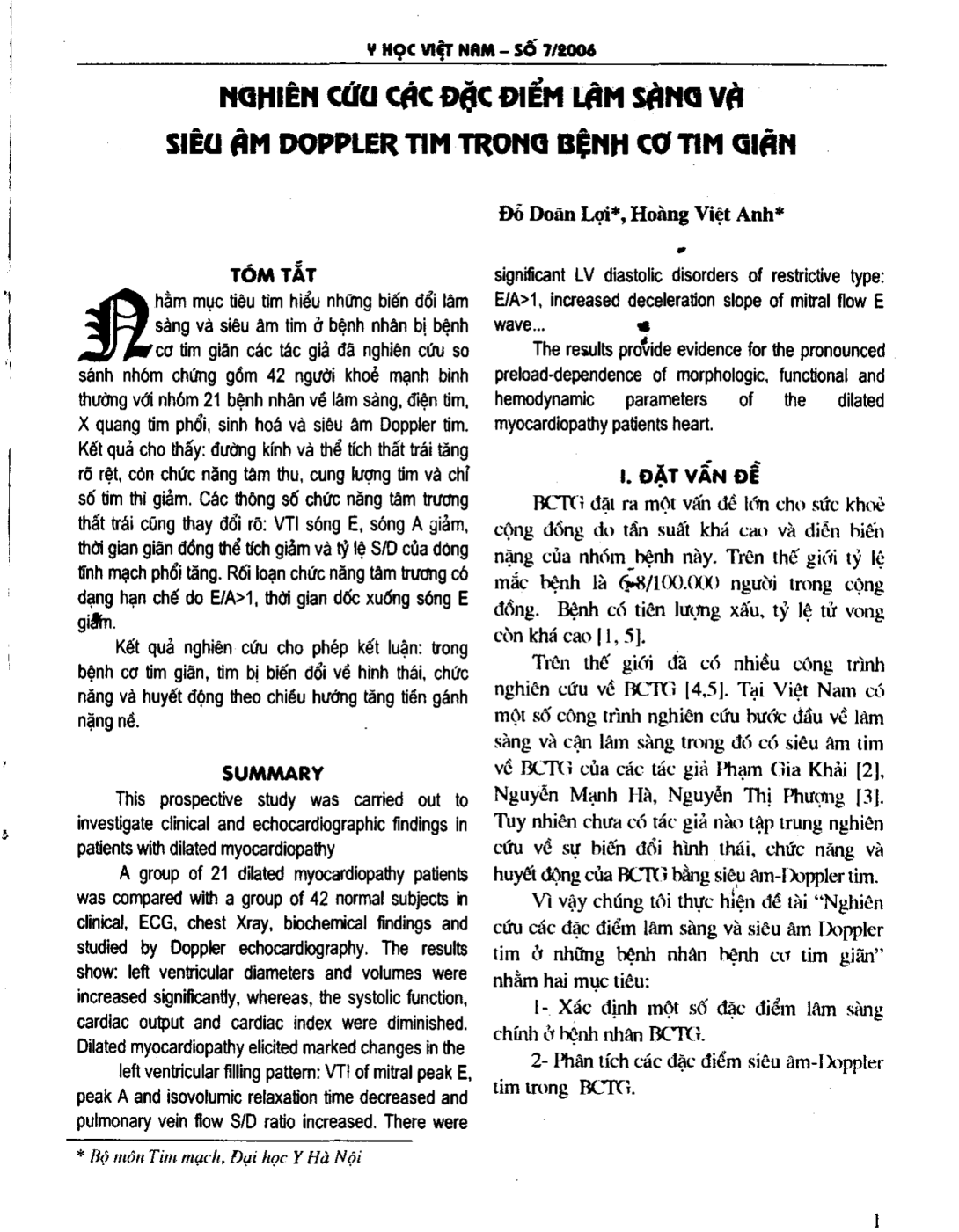 Nghiên cứu đặc điểm lâm sàng và siêu âm Dopper tim trong bệnh cơ tim giãn