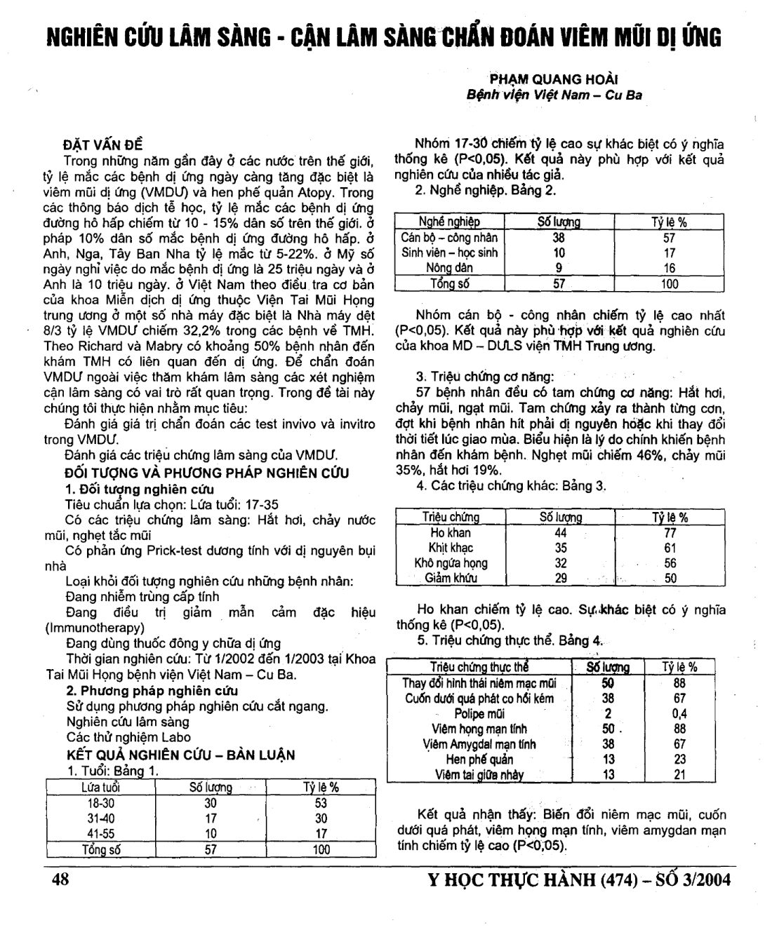 Nghiên cứu lâm sàng-cận lâm sàng chẩn đoán viêm mũi dị ứng