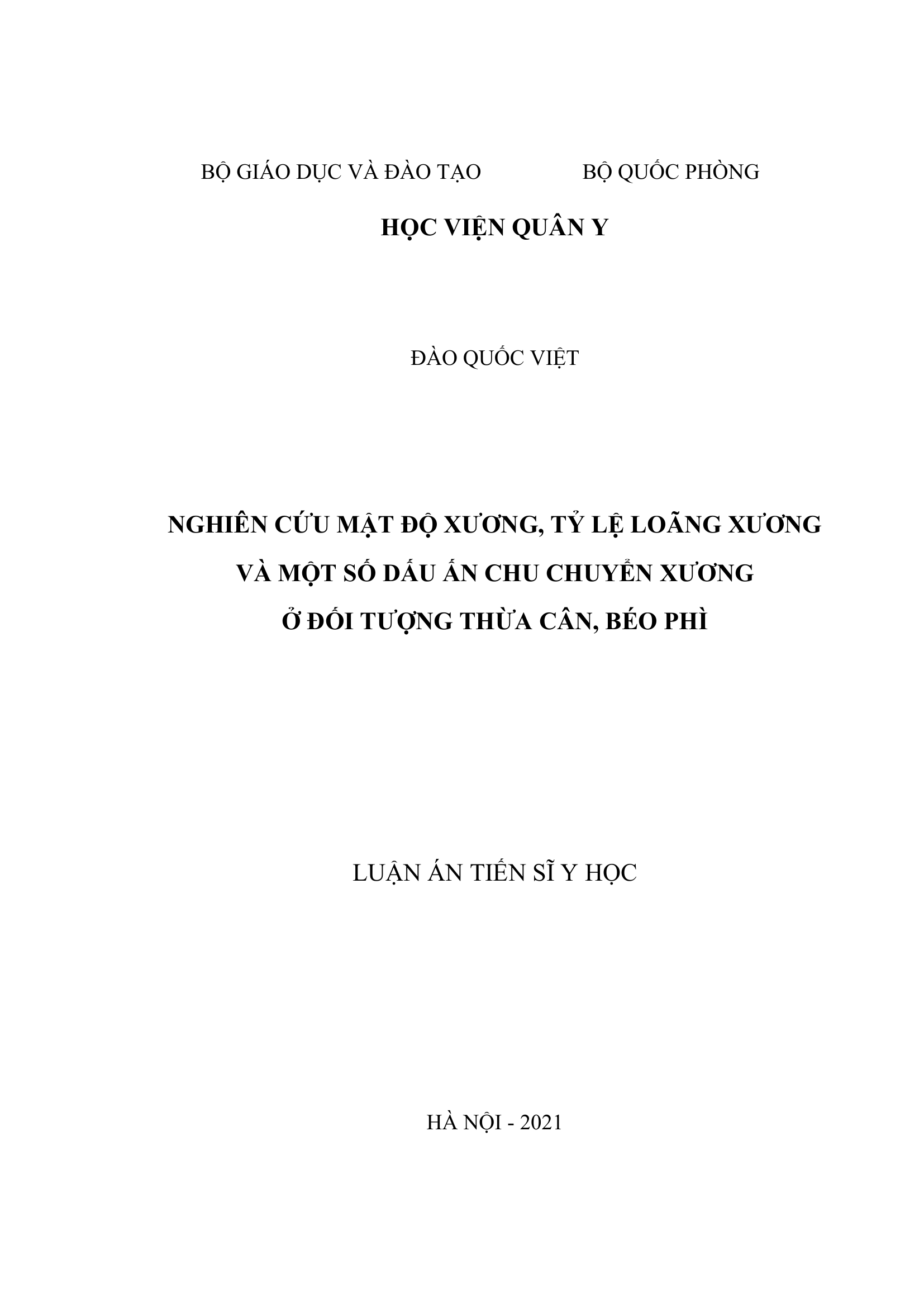 Nghiên cứu mật độ xương, tỷ lệ loãng xương và một số dấu ấn chu chuyển xương ở đối tượng thừa cân, béo phì
