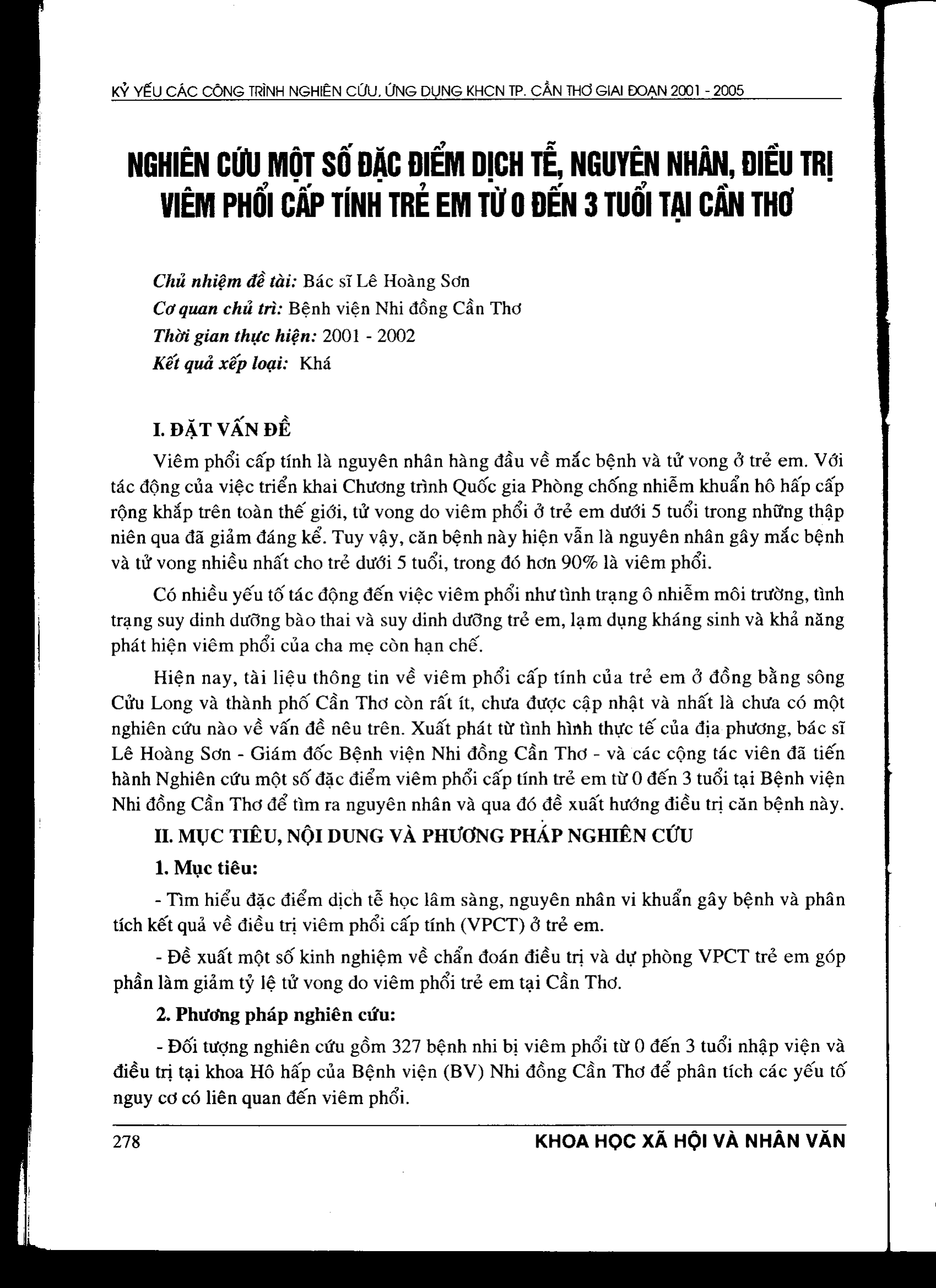 Nghiên cứu một số đặc điểm dịch tễ, nguyên nhân, điều trị viêm phổi cấp tính trẻ em từ 0 đến 3 tuổi tại Cần Thơ