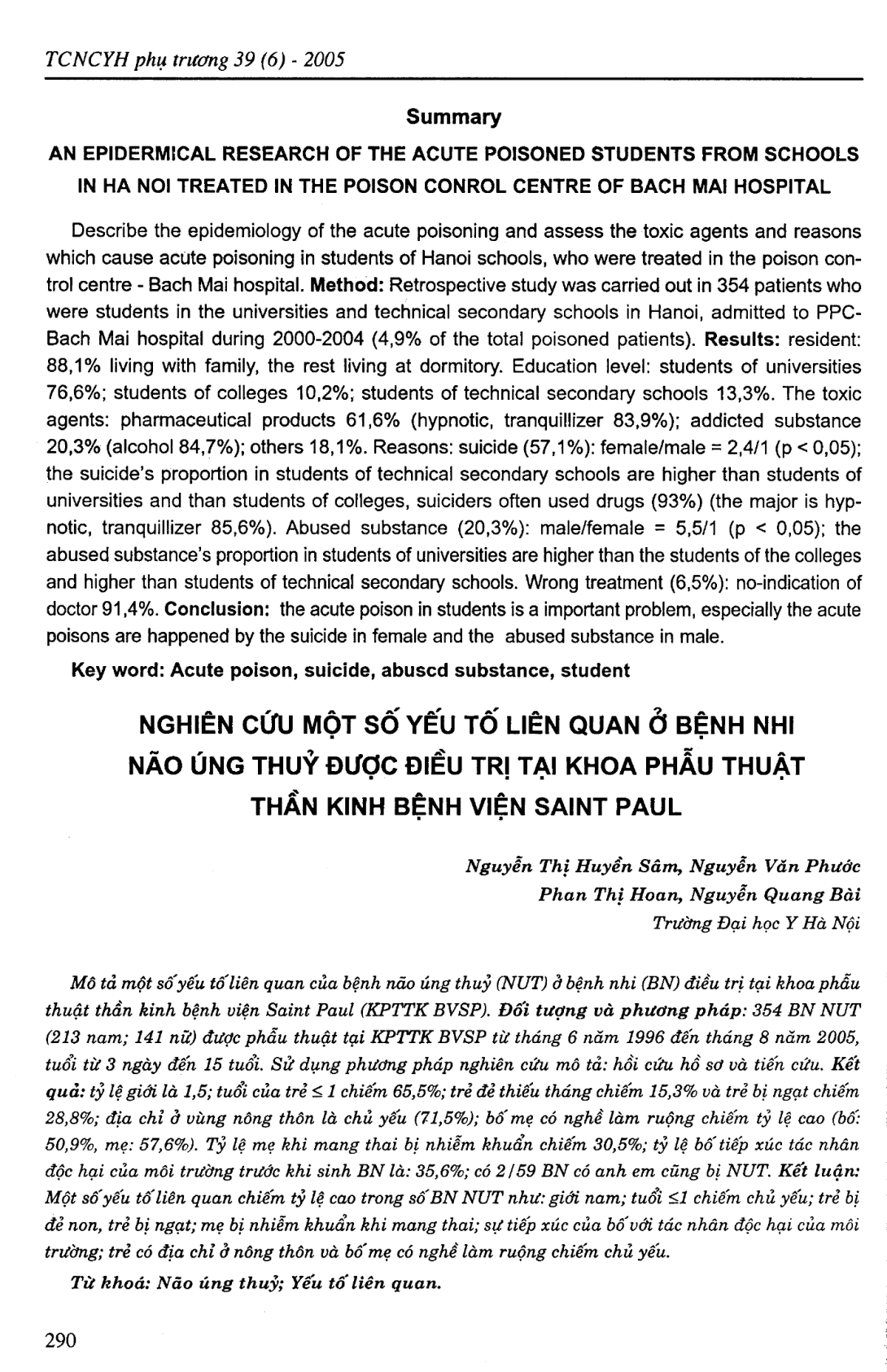 Nghiên cứu một số yếu tố liên quan ở bệnh nhi não úng thuỷ được điều trị tại khoa phẫu thuật thần kinh Bệnh viện Xanh - Pôn