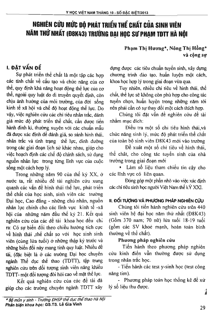 Nghiên cứu mức độ phát triển thể chất của sinh viên năm thứ nhất (DDBK43) đại học Sư phạm TDTT Hà Nội