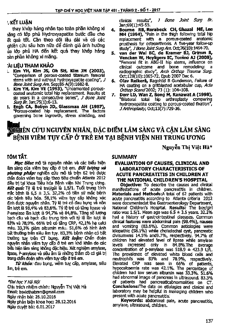 Nghiên cứu nguyên nhân, đặc điểm lâm sàng và cận lâm sàng bệnh viêm tụy cấp ở trẻ em tại bệnh viện Nhi Trung ương