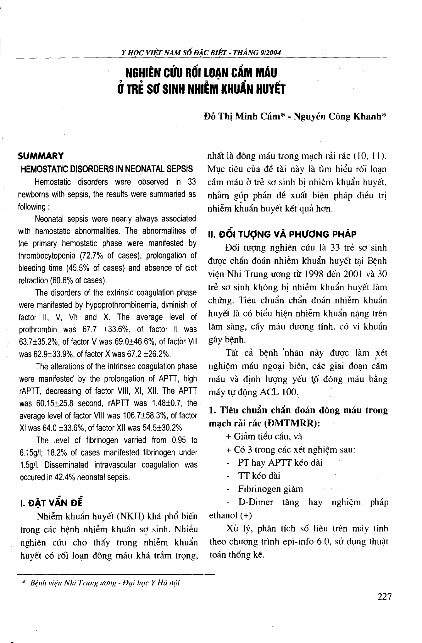 Nghiên cứu rối loạn cầm máu ở trẻ sơ sinh nhiễm khuẩn huyết